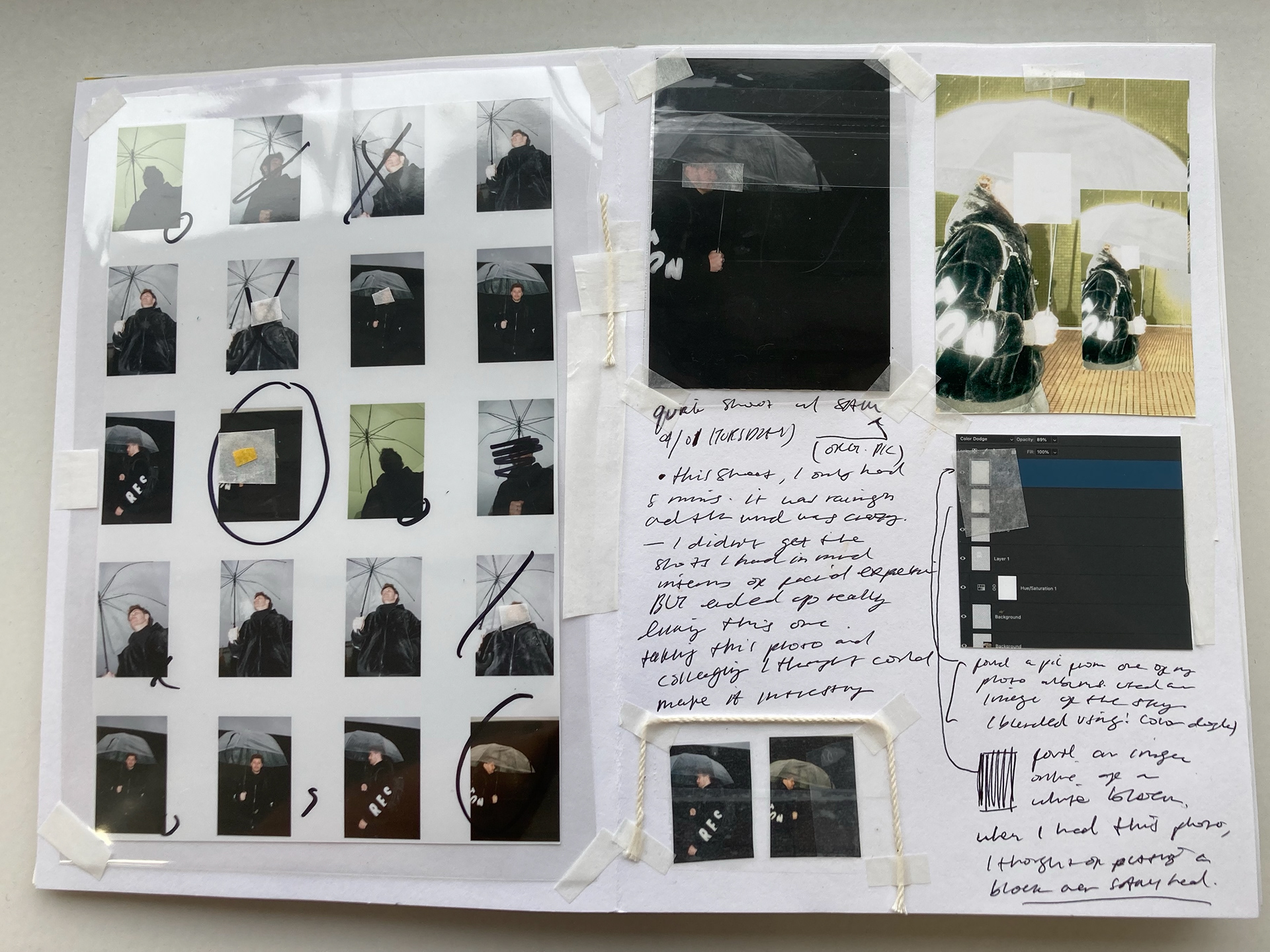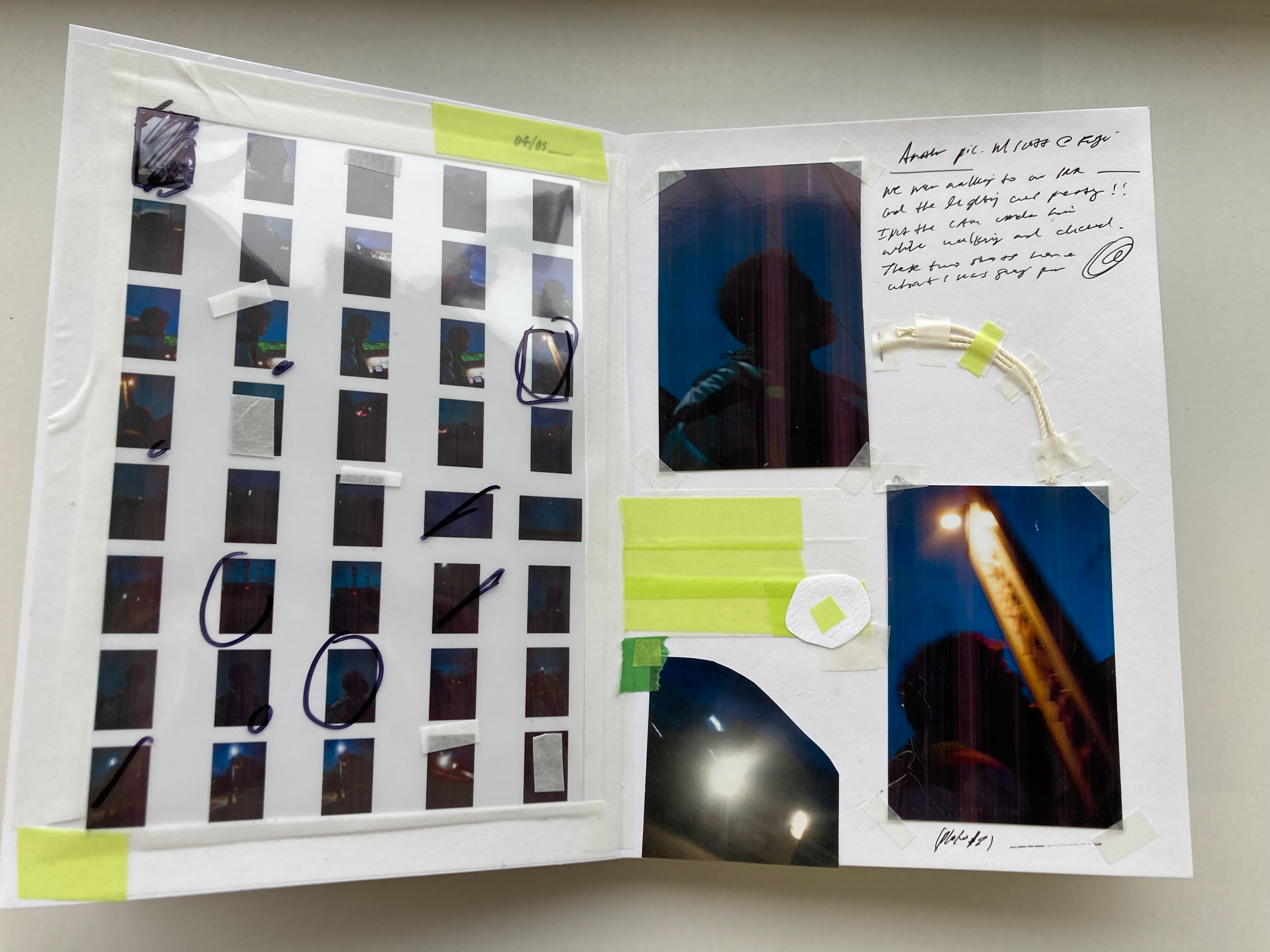This was my first time making a photo-book! I decided to go the experimental route and make it into a photo journal. While the final selected photos are limited, this book was more so about documenting my process of photography, all the way from providing contact sheets and before and after photos to show the impact of photo editing. I wrote personal notes, mostly unintelligible, to make it feel more like a journal.